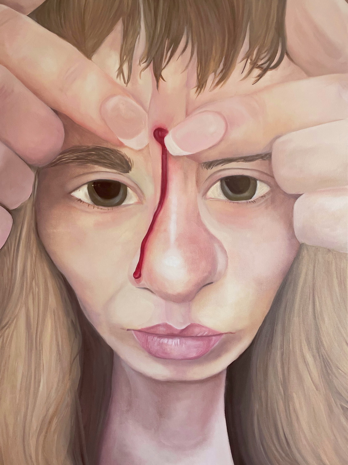 Sypanie soli na skórę, olej na płótnie, 90 x 90 cm, 2023