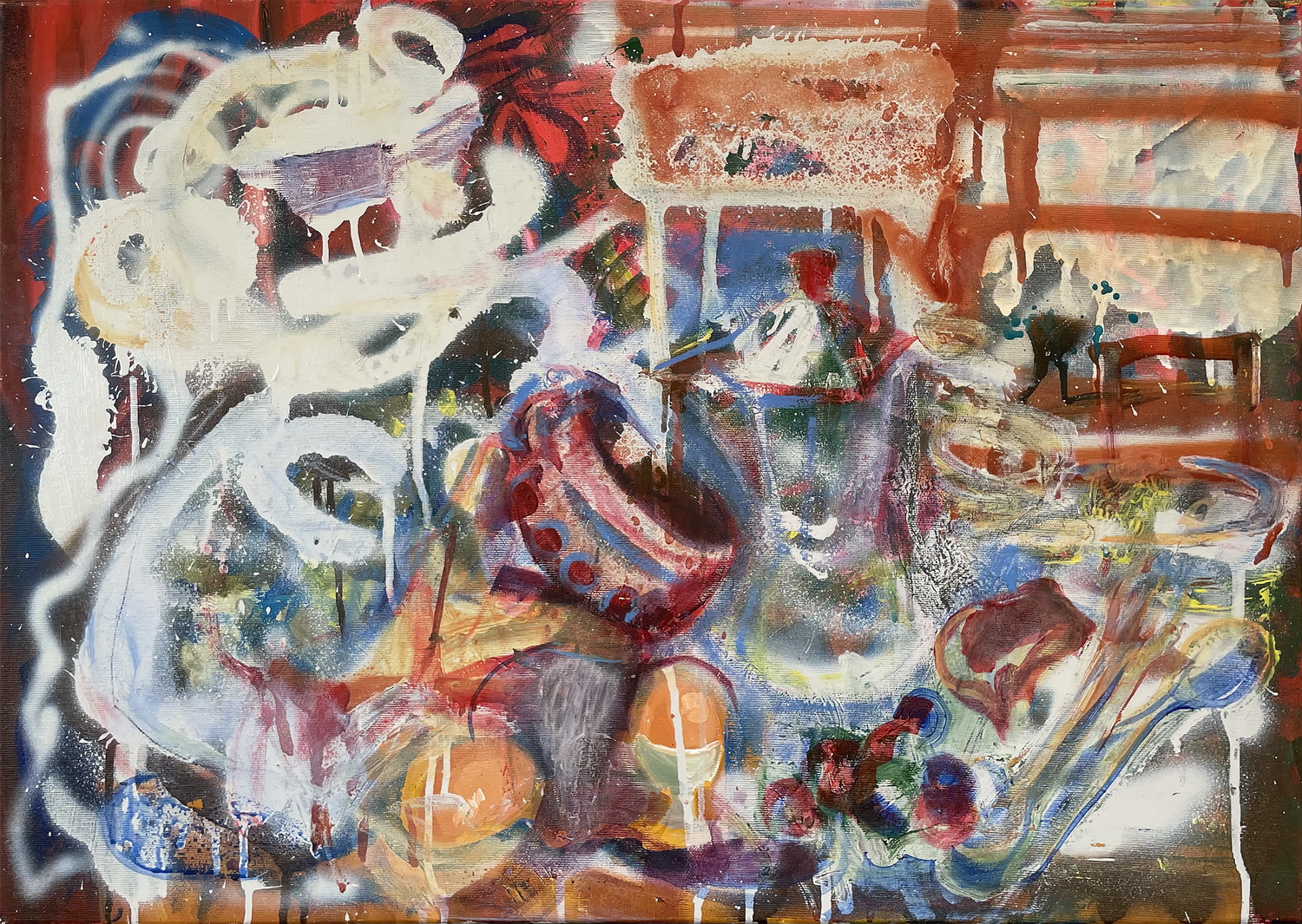 Bez tytułu, olej, pastele na płótnie, 160 x 200 cm, 2025